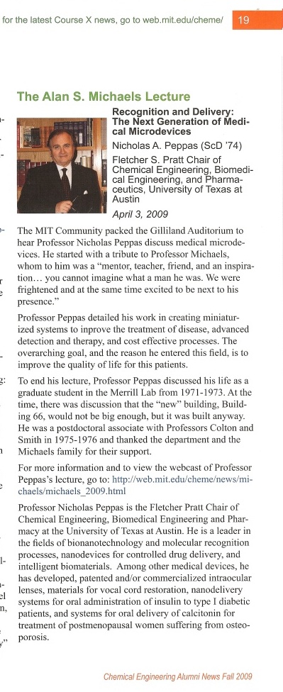 The Peppas Factor: Educating Future Leaders An article about Dr. Peppas' educational contributions and teaching style (link)(pdf).